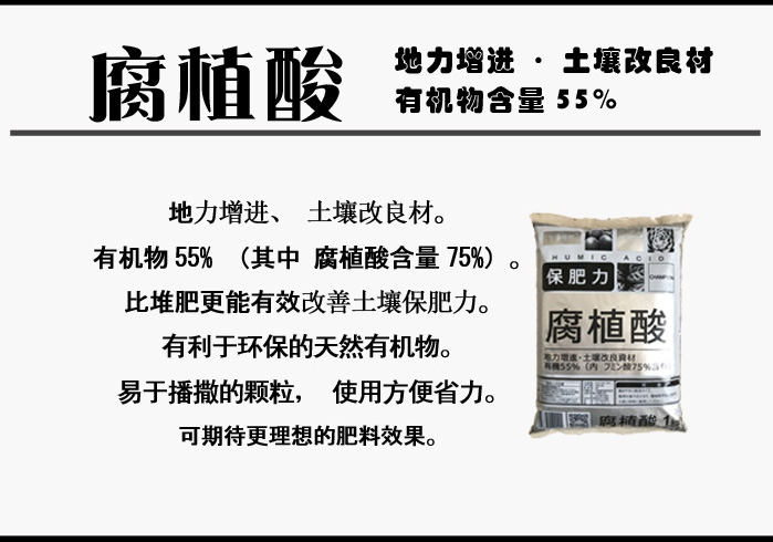 地力增进、土壤改良材。有利于环保的天然有机物。有机物含量55%。易于播撒的颗粒,方便省力。有效改善土壤保肥力。